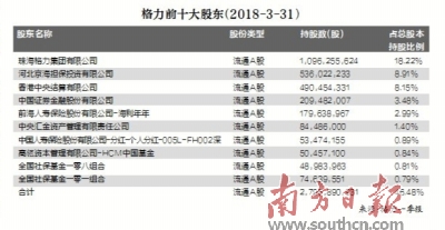 格力一季报公布的格力电器股东结构显示,截至2018年3月31日,格力电器十大股东中已没有董明珠,而在去年一整年,董明珠是公司的第九或者第十大股东。