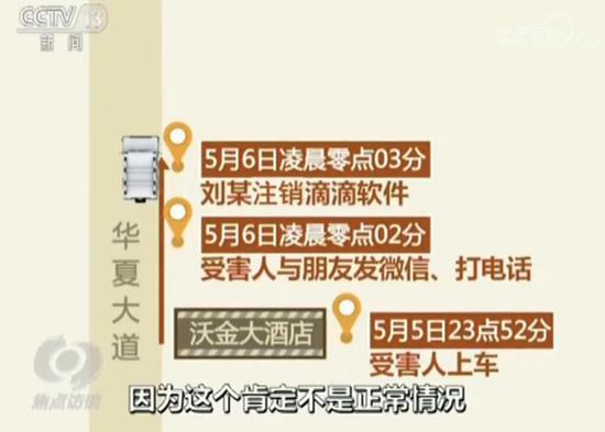 根据警方调查,5月5日,晚上23点52分,受害人坐上了犯罪嫌疑人的车,目的地是郑州火车站。十分钟后,5月6日凌晨零点02分左右,受害人曾经告诉同伴自己遇到了一个言语不轨的司机,为了震慑对方,同伴给受害人还打了一个电话,就在二人通话的同时,司机刘某注销了滴滴软件。