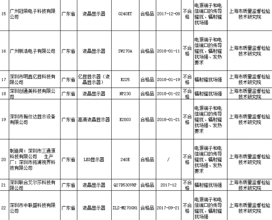 2018年第2批,共抽查了22家企业生产的22批次液晶显示器产品。抽查发现有批次产品不符合标准的规定,涉及到发热要求,电源端子和电信端口的传导骚扰,辐射骚扰场强项目。
