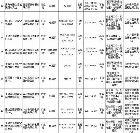 2018年第2批,共抽查了20家企业生产的20批次电磁灶产品。抽查发现有9批次产品不符合标准的规定,涉及到非正常工作、机械强度、能效等级、端子骚扰电压、电磁辐射骚扰等5个项目。